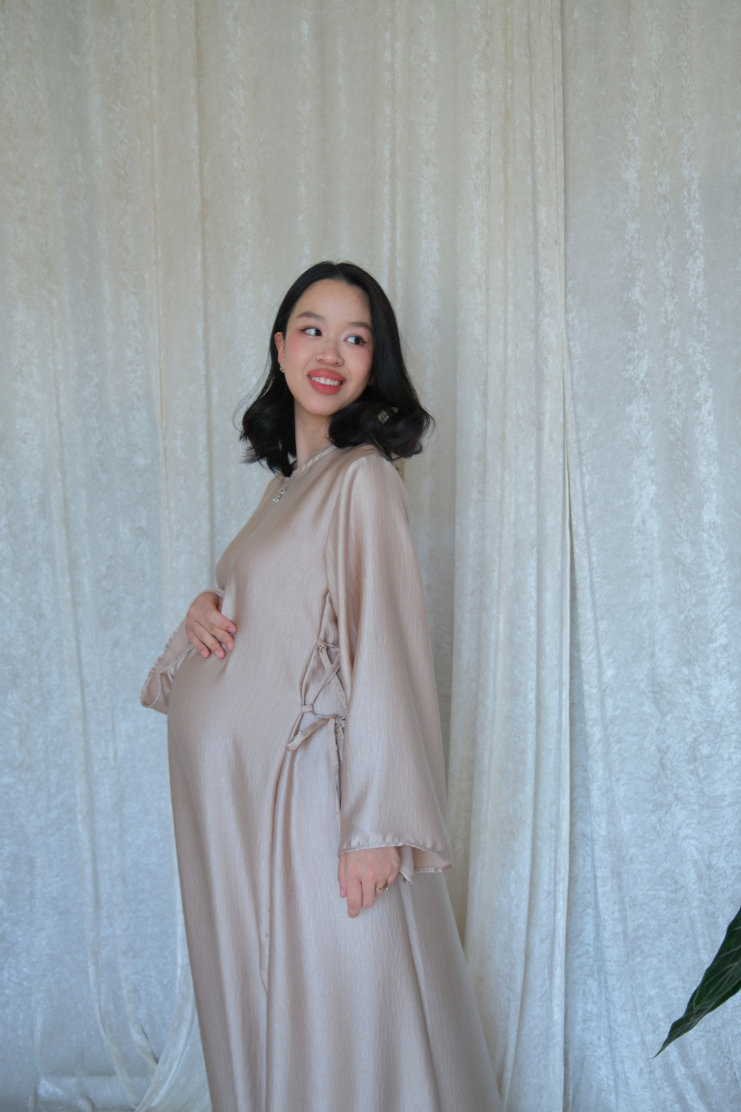 I wear a size 8 (S). I must say… It’s hard to find a good maternity dress for work and special occasion. Once I found Khush, I tried Sinar Abaya in Golden Glow. Ohh… Love the material - soft and comfy. Easy to adjust the side straps as your tummy gets bigger. You can definitely wear this until post-pregnancy. Indeed a pregnancy glow dress when wearing this! Best of all, it is made in Brunei. Worth the purchase. Thank you so much for bringing thoughts and love to preggy mommy’s closet! ❤️